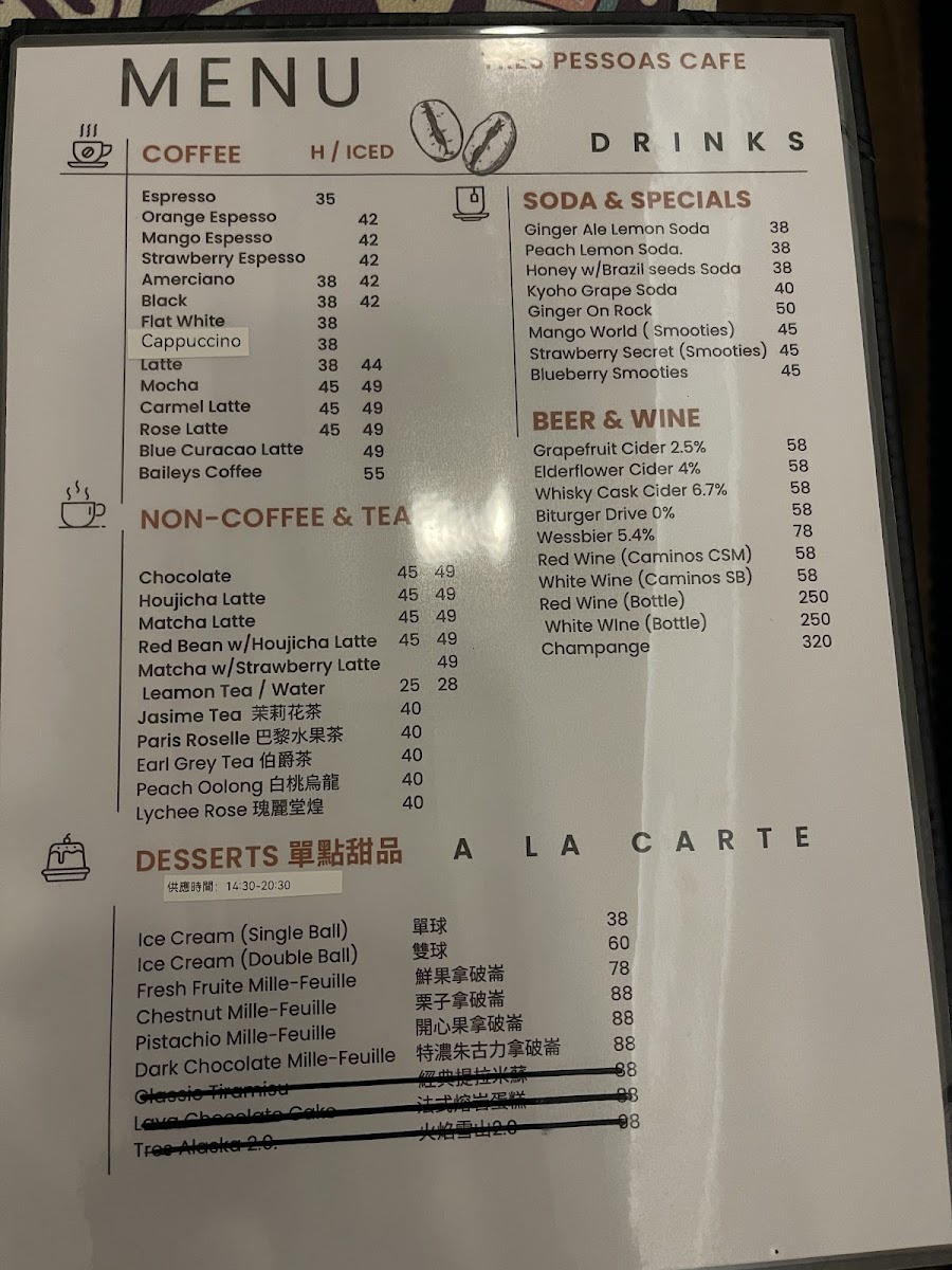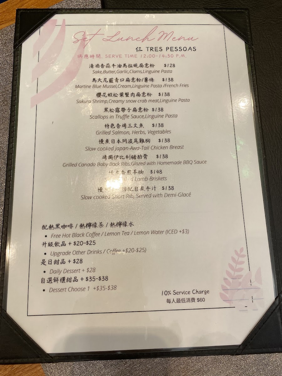 Tres pessoas cafe Menu